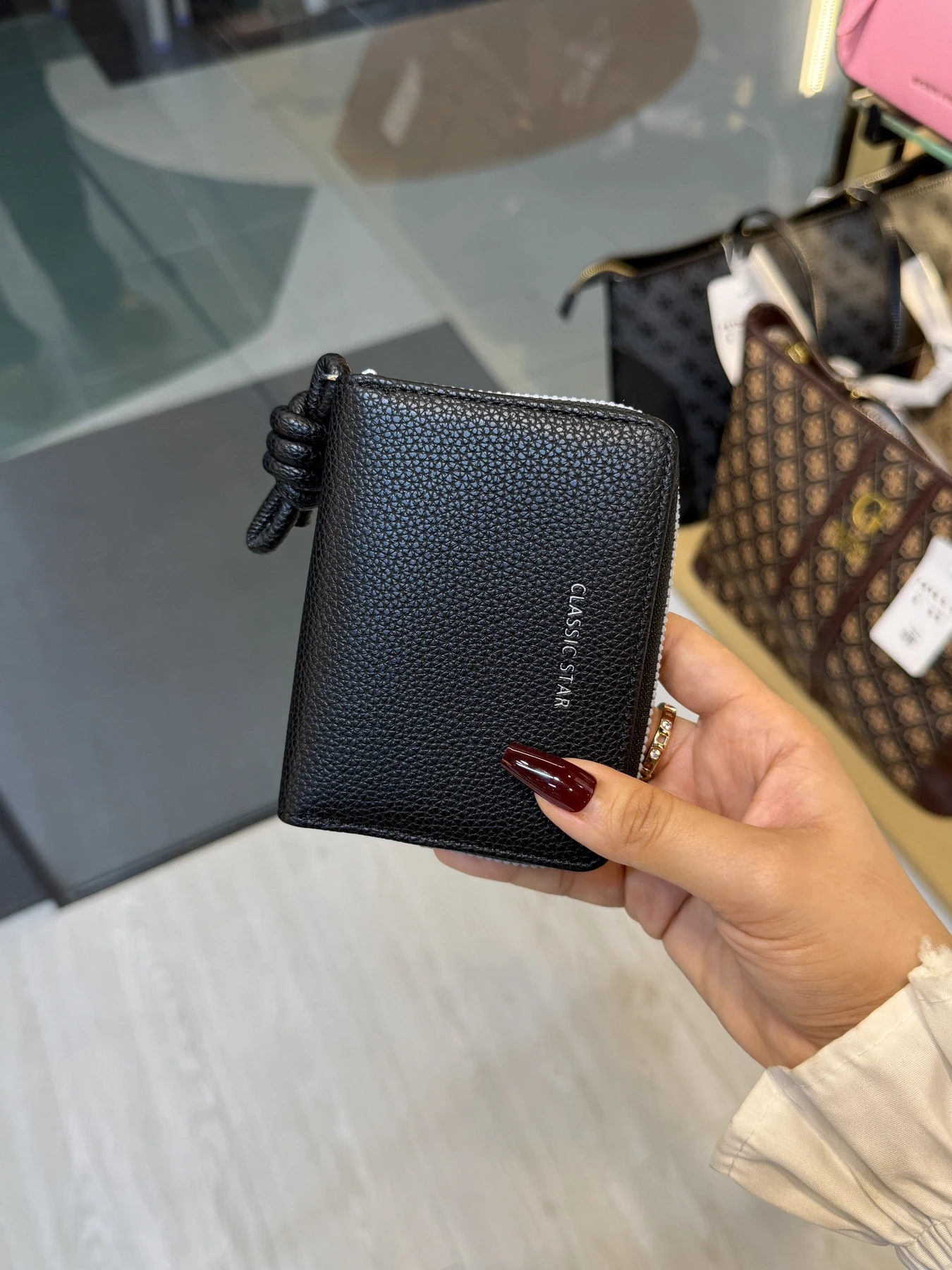 Functionality: Cash Compartment, Zipper, Card Holder.