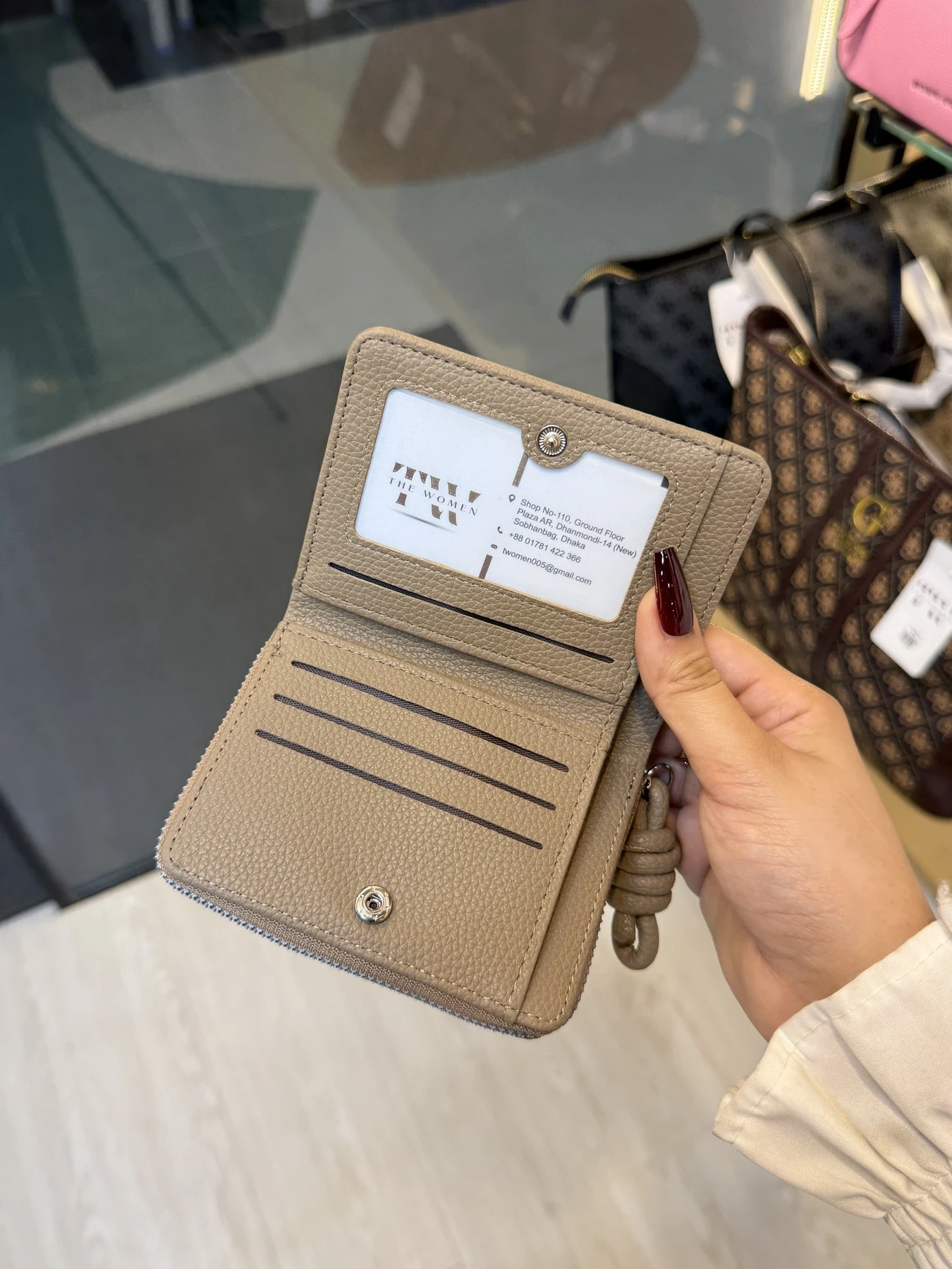 Functionality: Cash Compartment, Zipper, Card Holder.