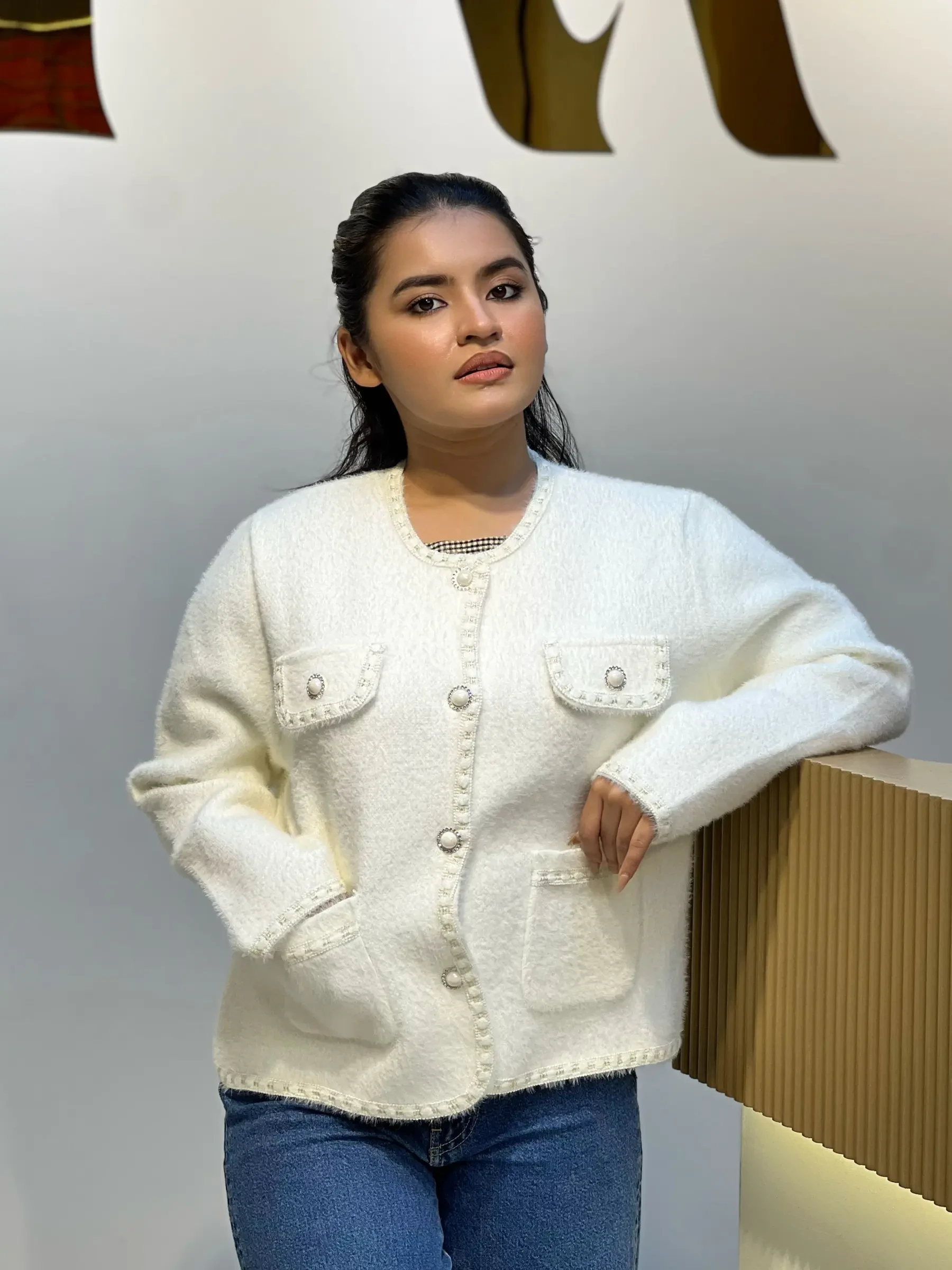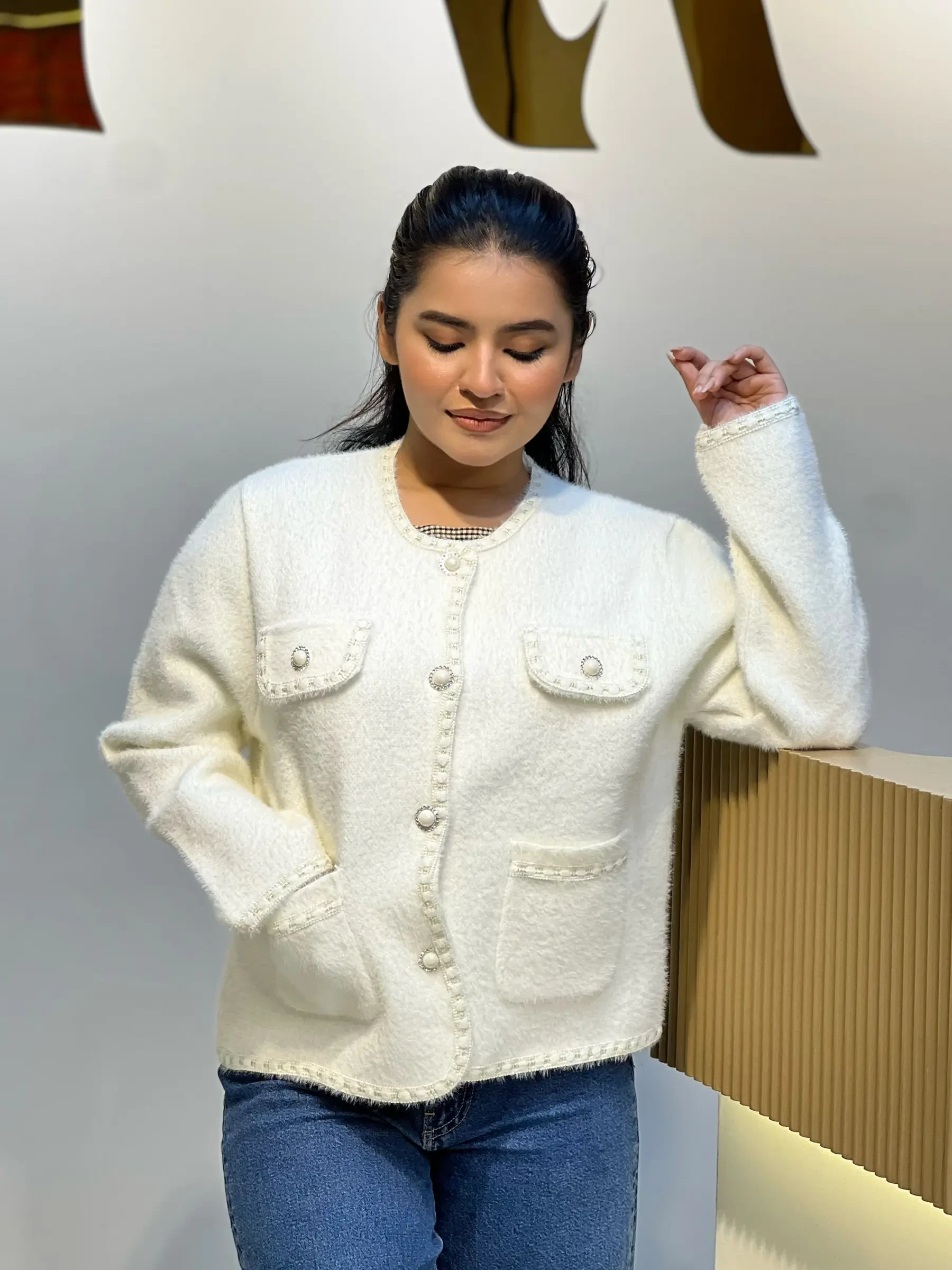 Korean Inspired Ladies Sweater-6113 (Cream)