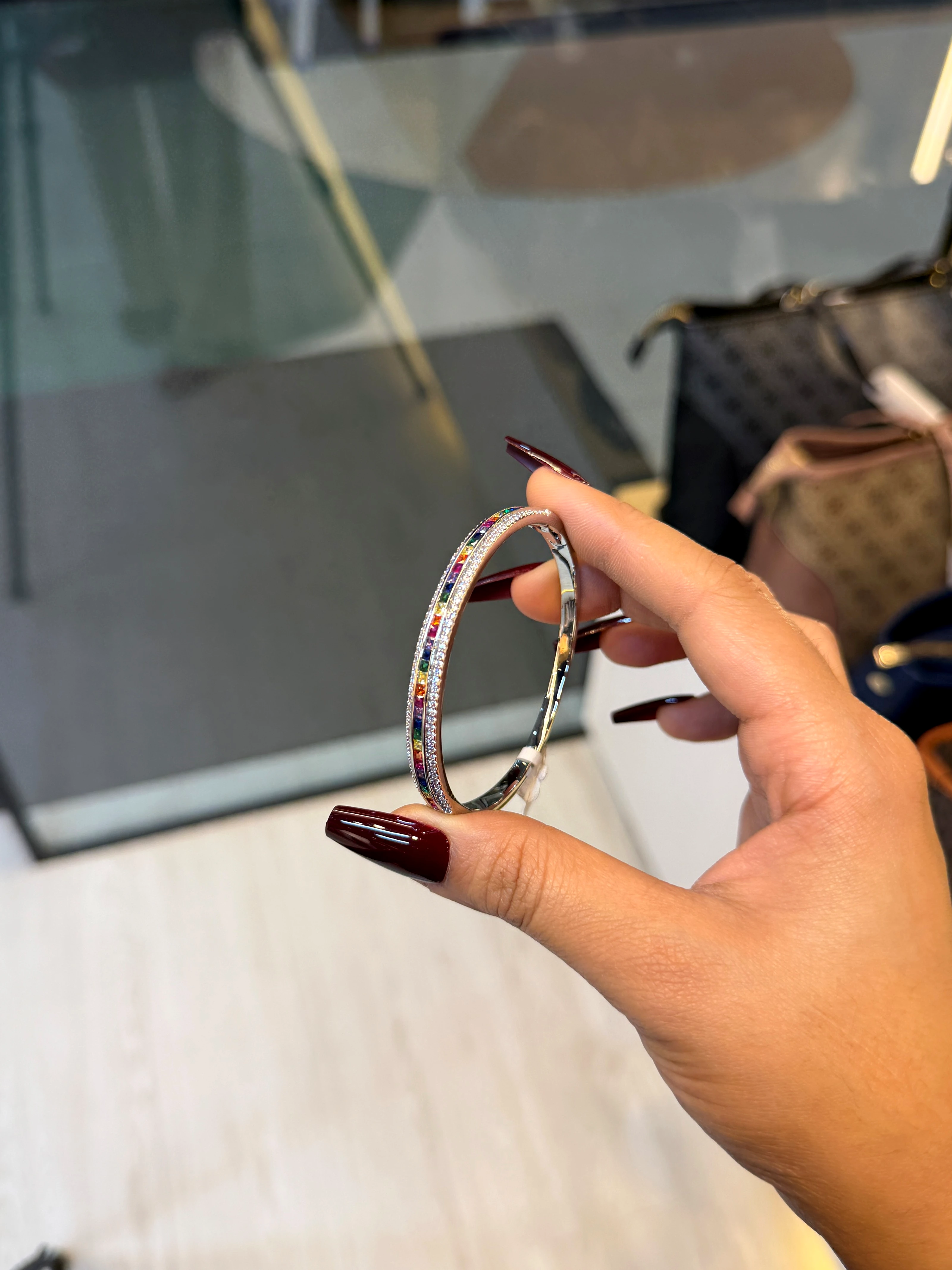 Zircon Stone Imported Bangles - 9108437K281 (Silver)