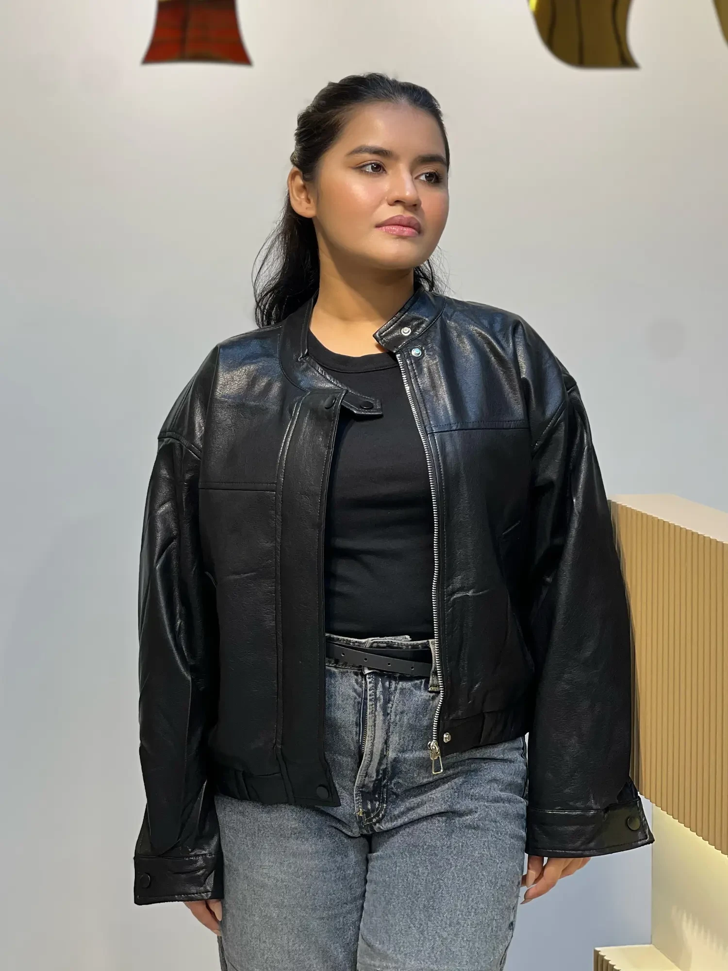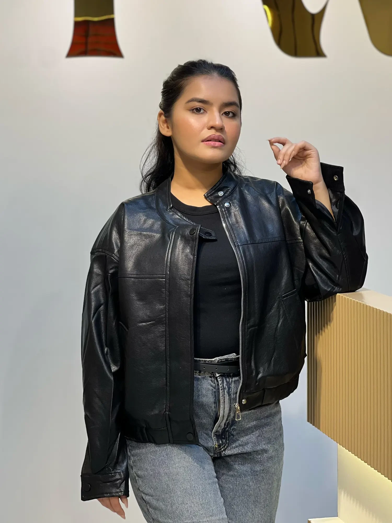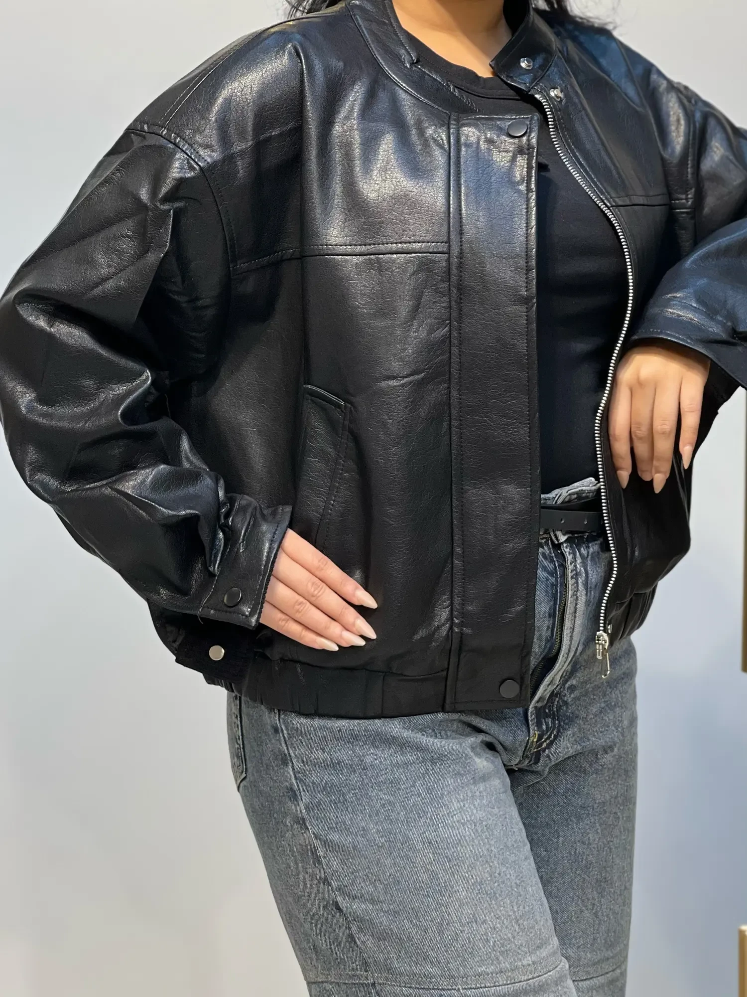 Elegant PU Leather Jacket-9071 (Black)
